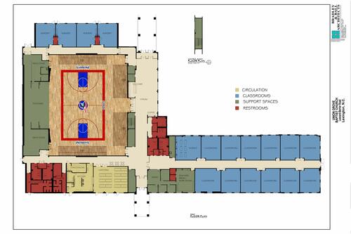 A multipurpose Gymnatorium with an educational wing